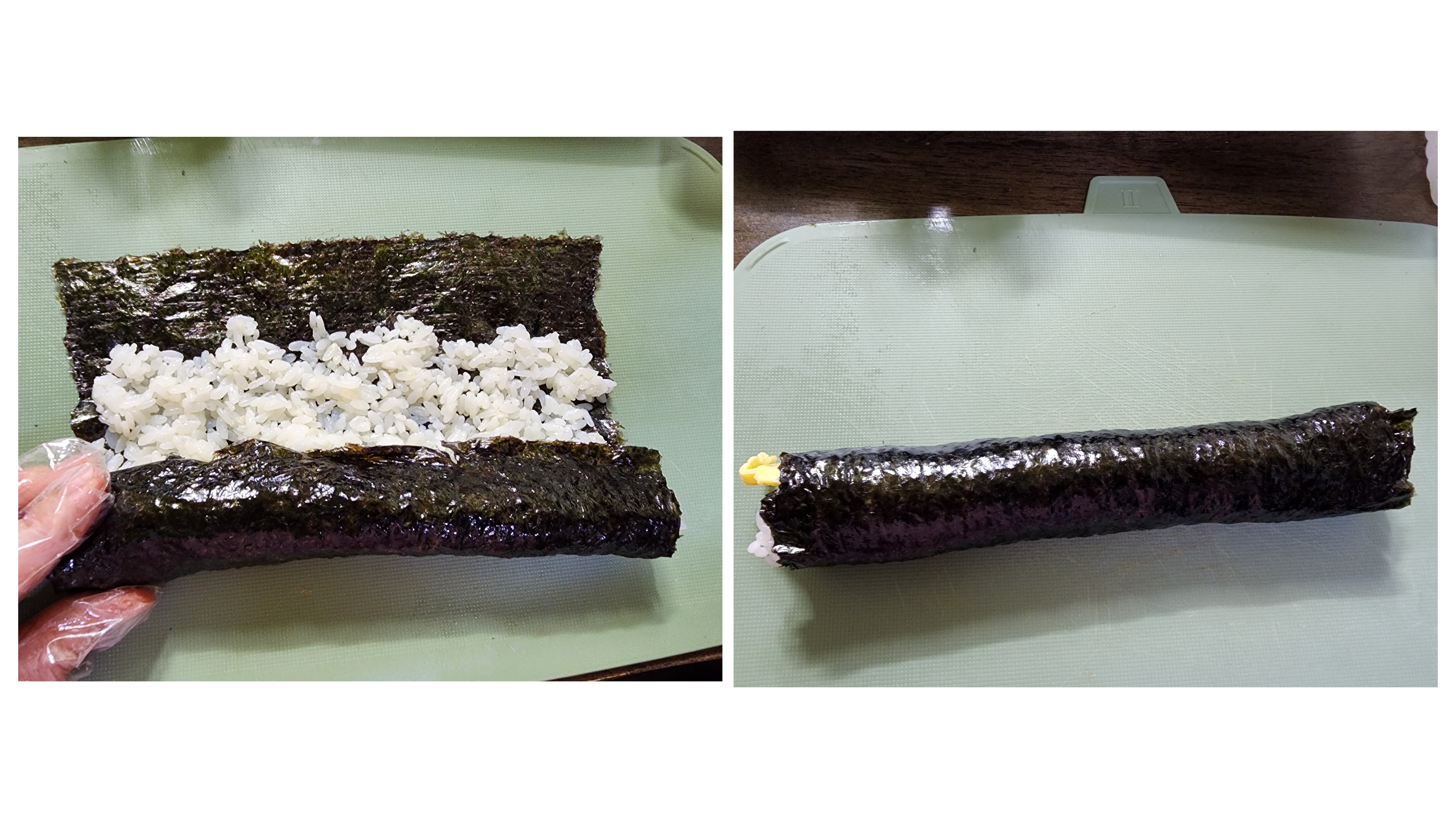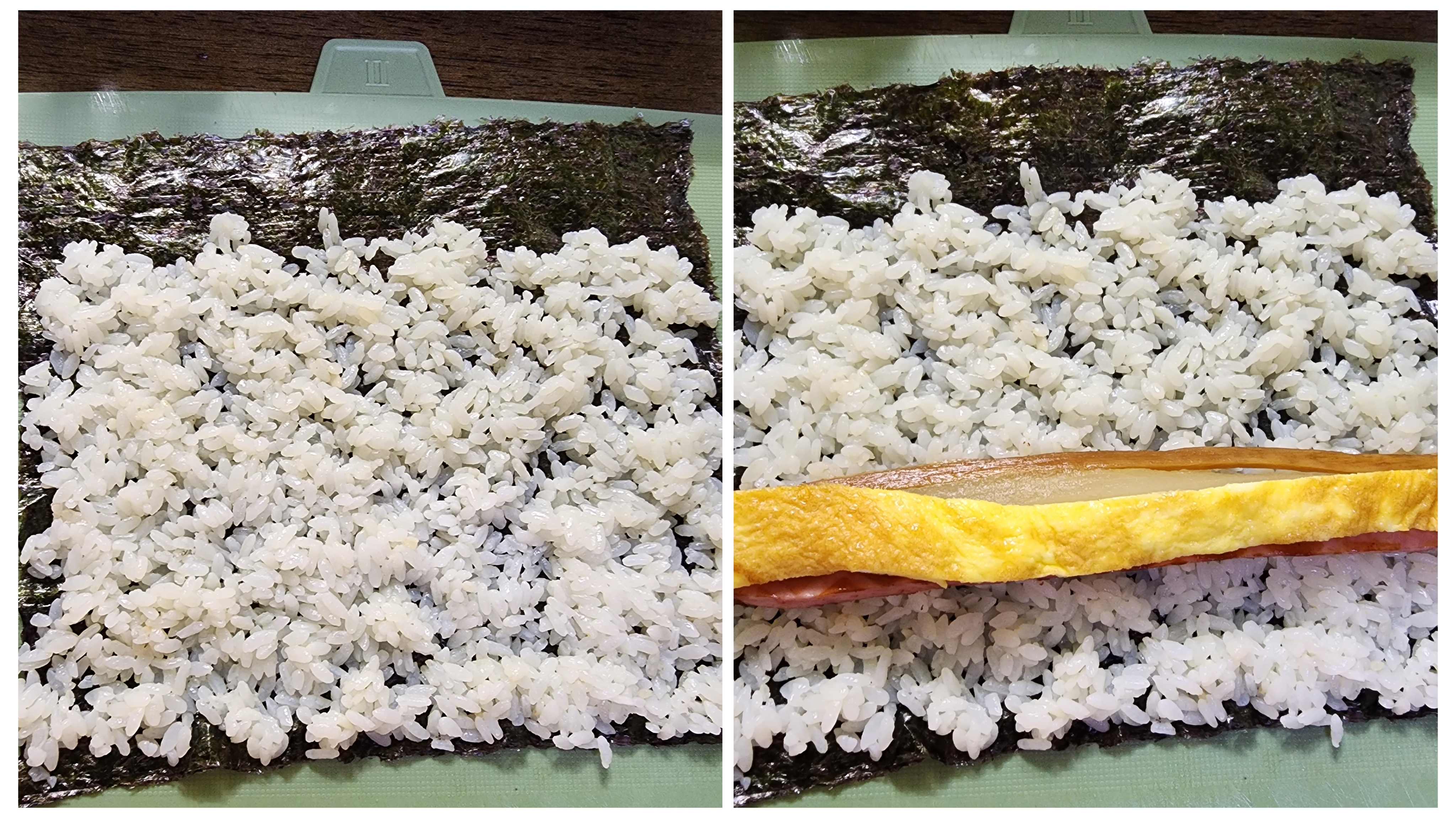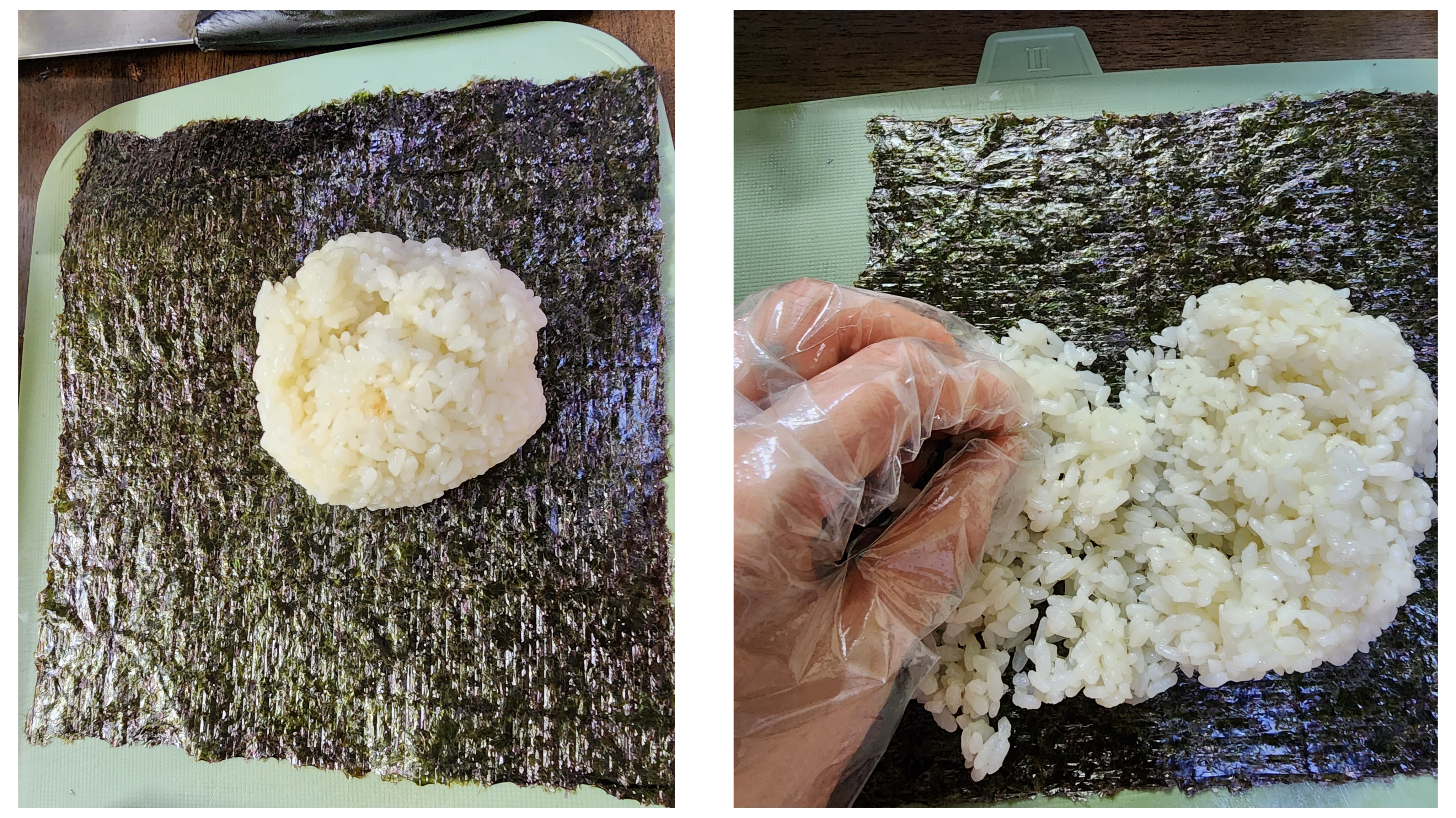 야구공정도 크기의 밥을 김 위에 올려줘서