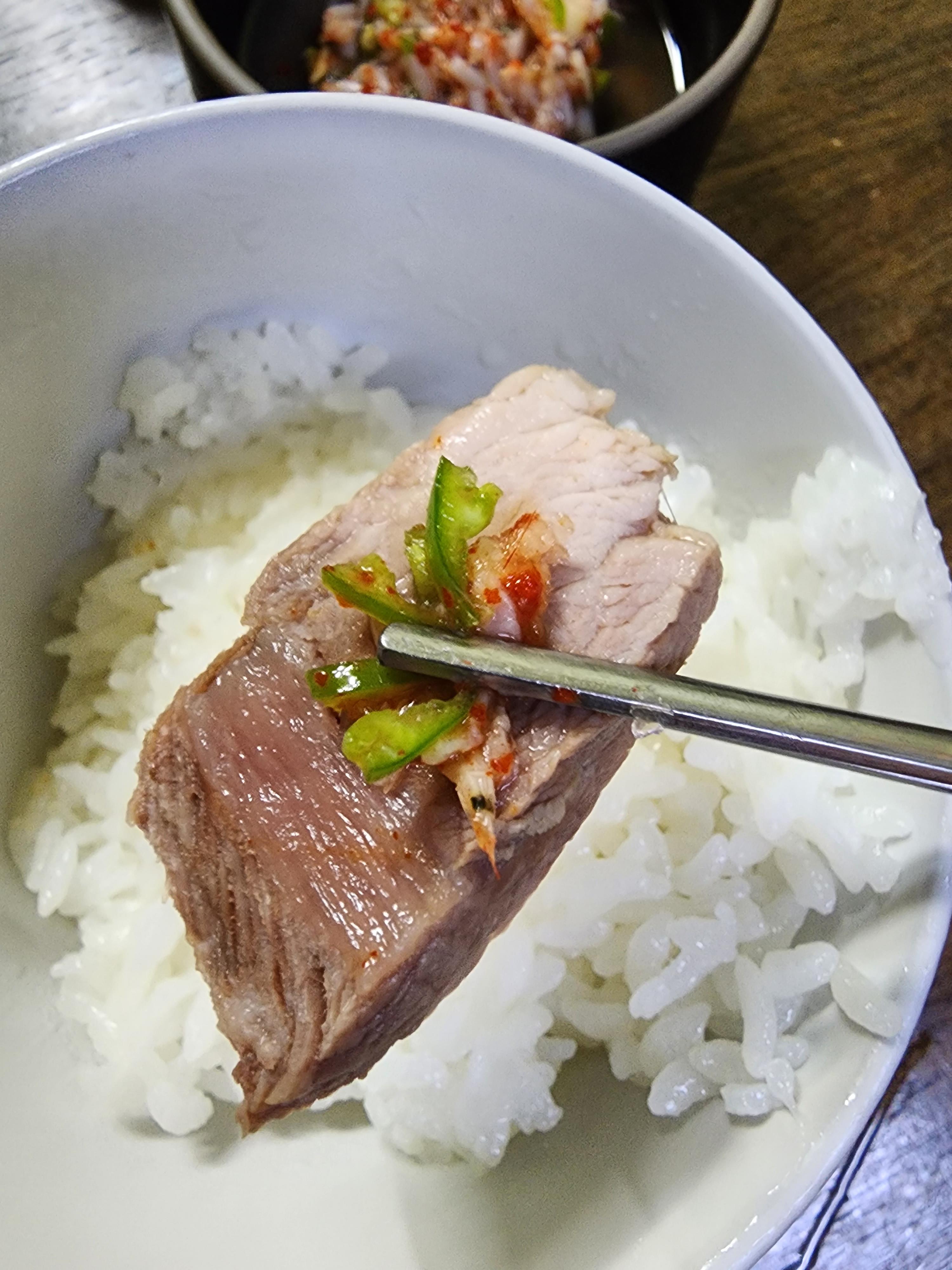 저는 삼겹살보다 기름이 적은 앞다리살을 이용해