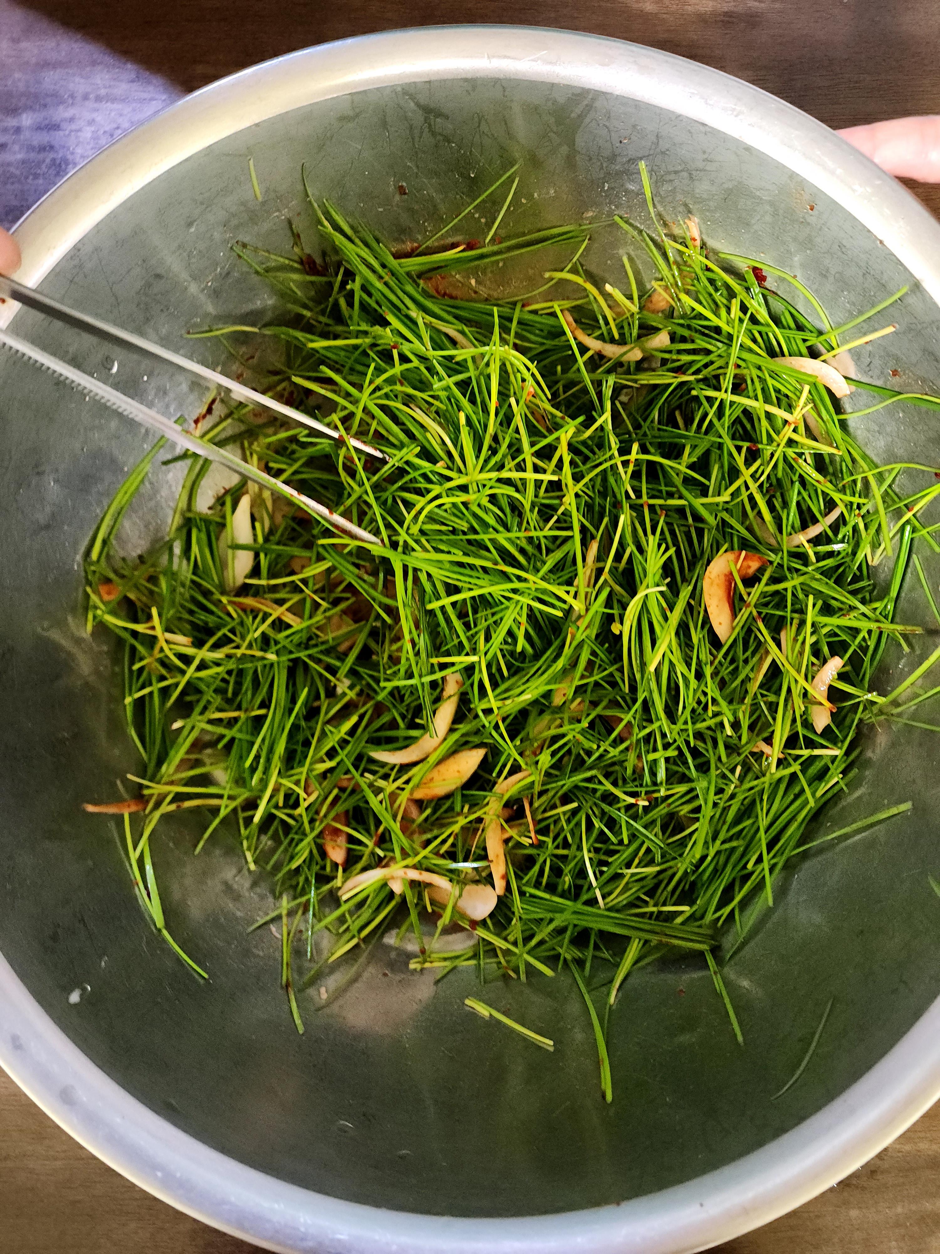 가늘어 아삭한 식감과 알싸한 맛이 살아있어서