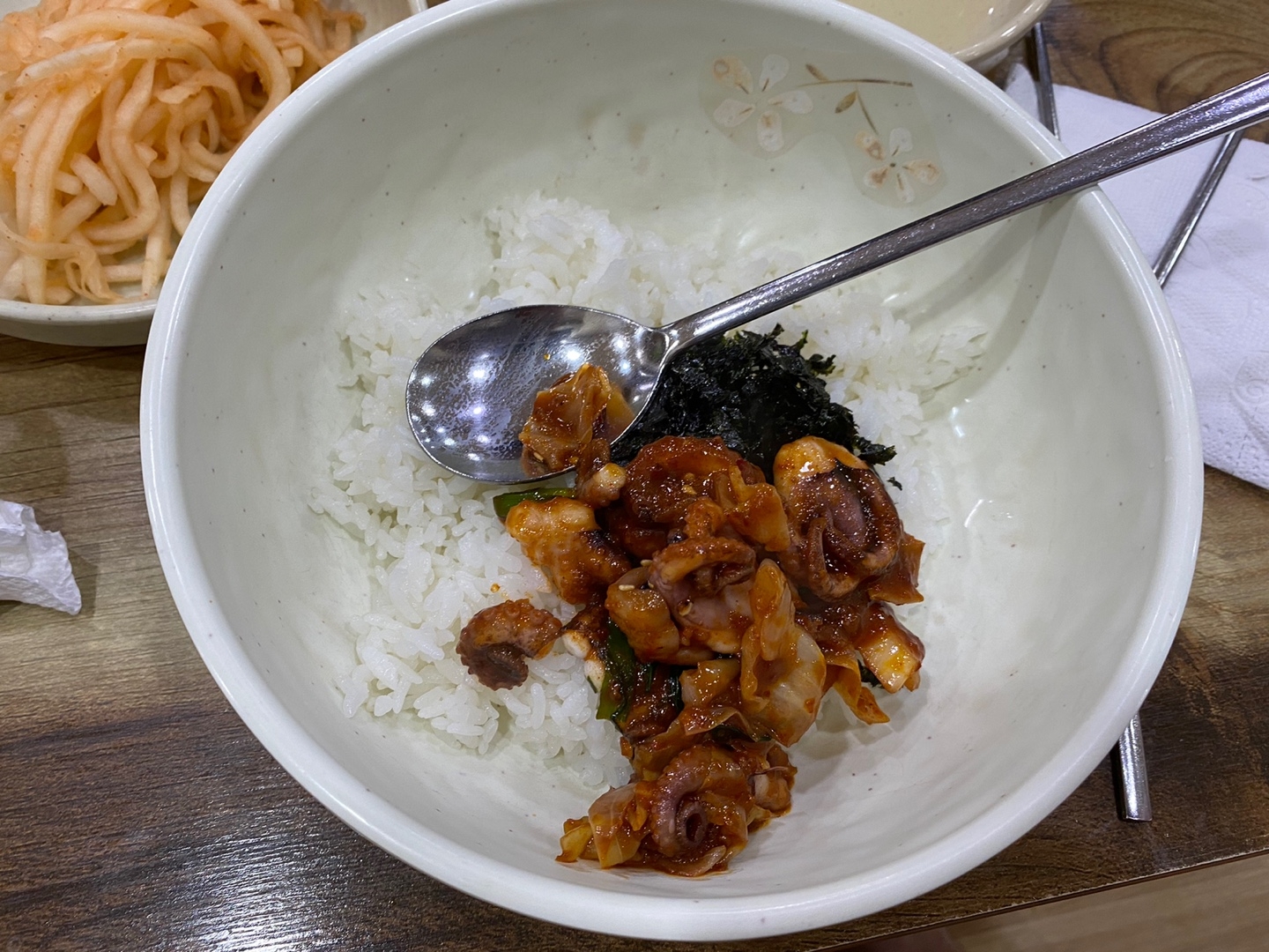 쭈꾸미랑 무채 콩나물넣어서 쓱쓱 비벼먹음