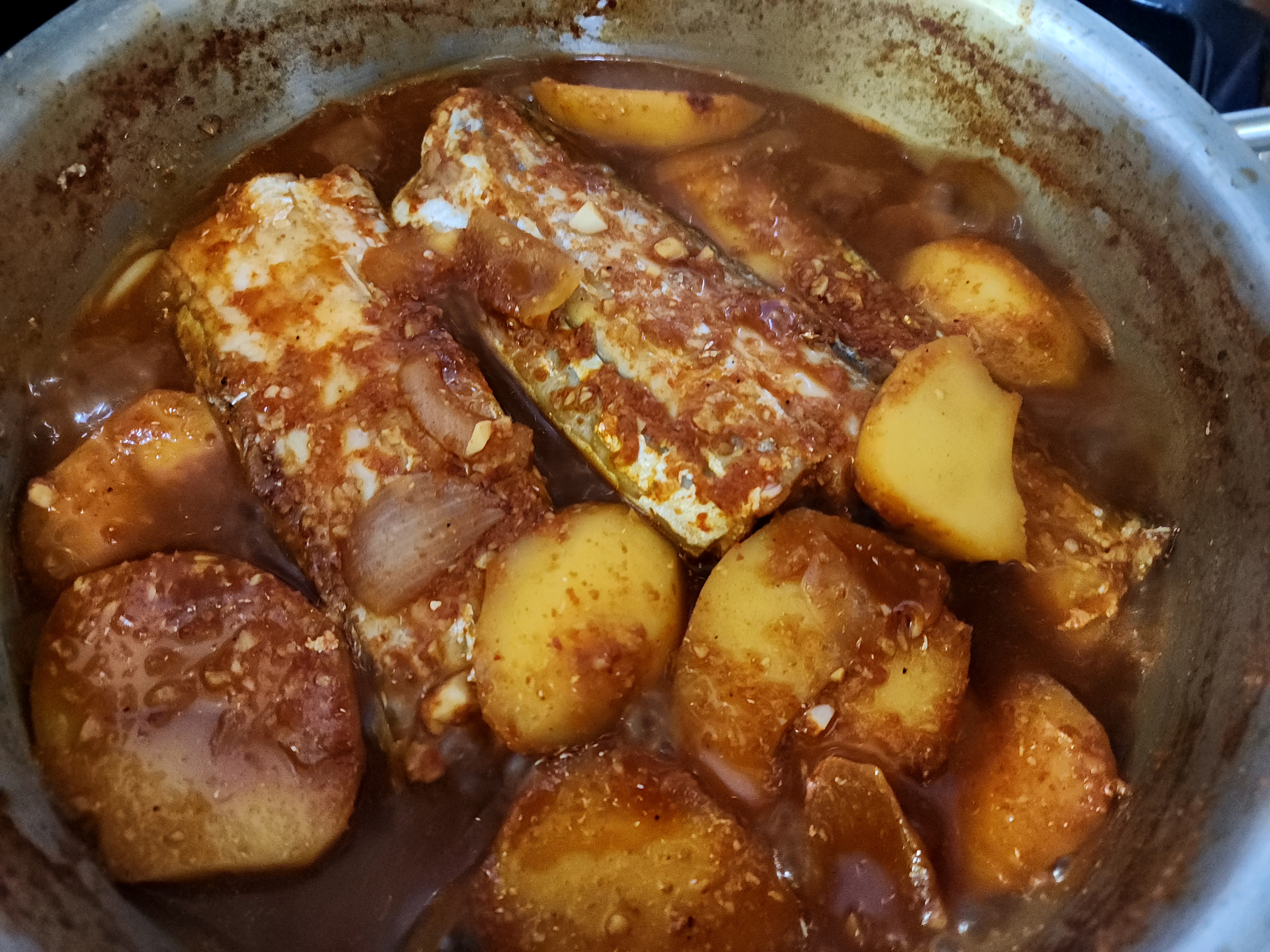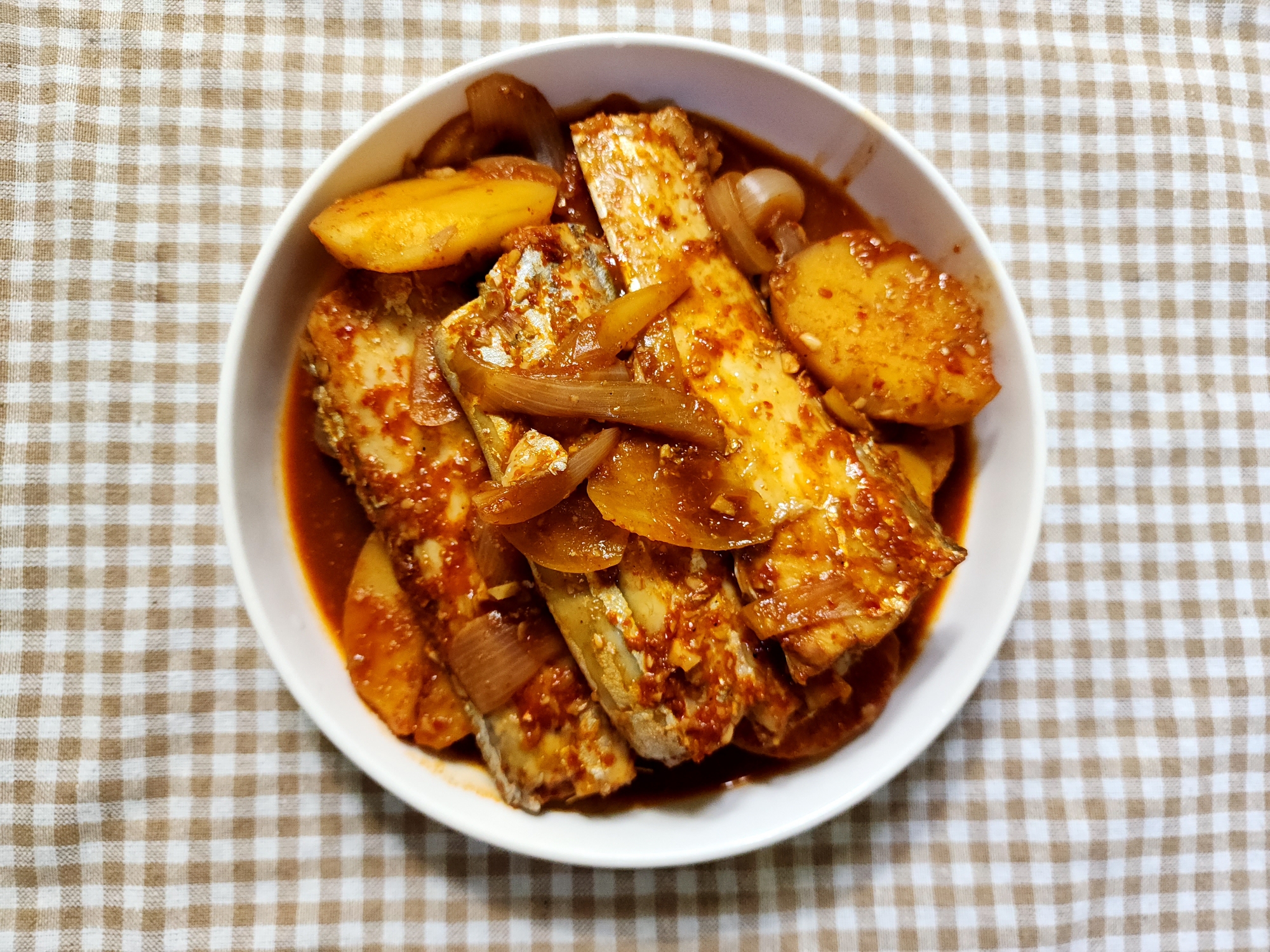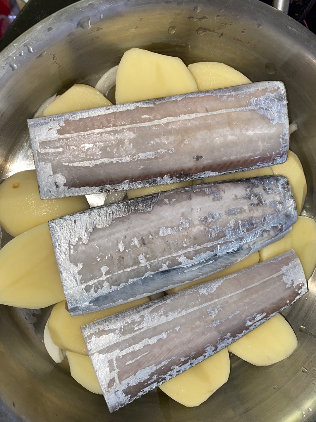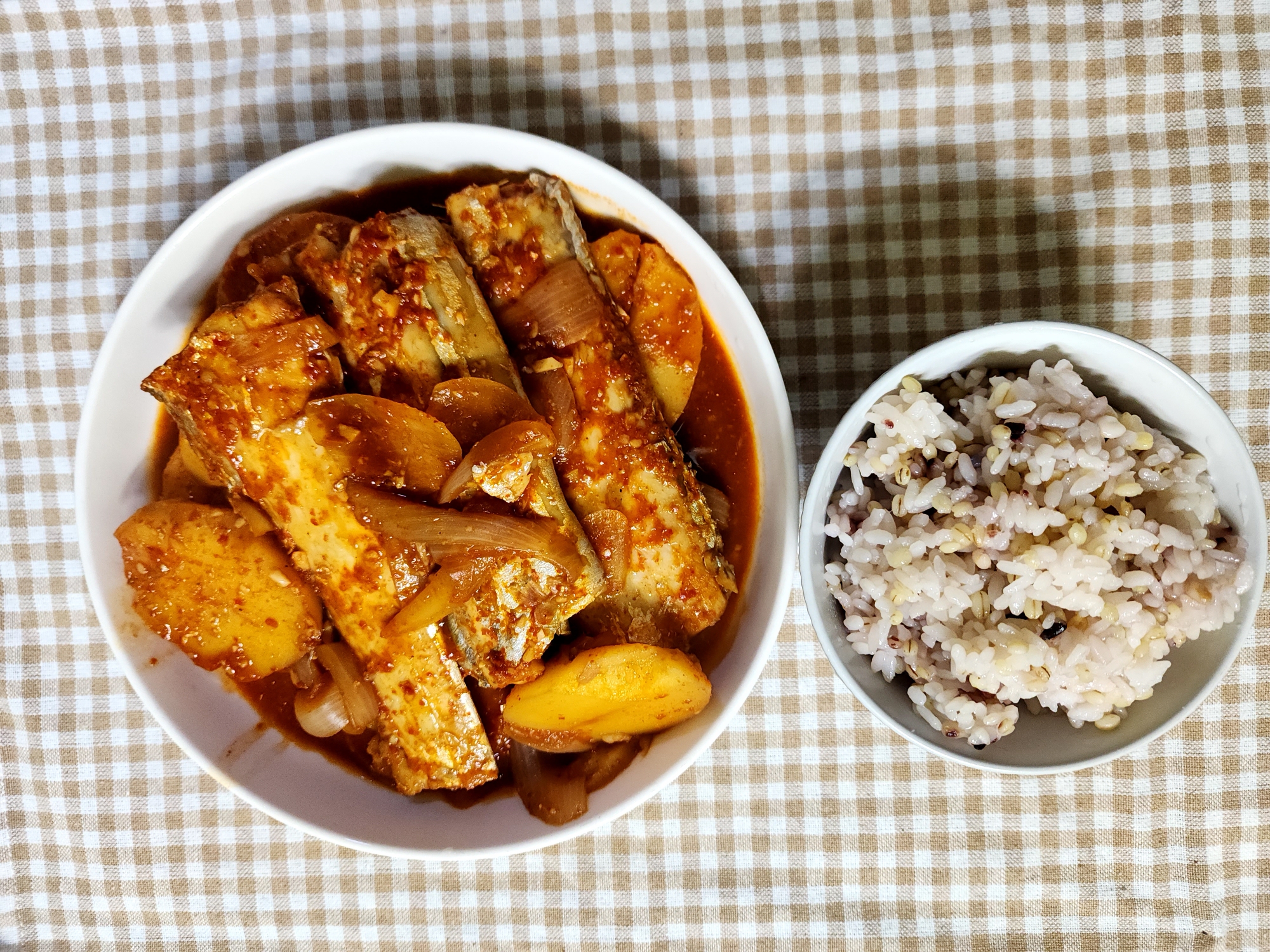 갈치살과 감자를 얹어 먹으면 밥을 부르는