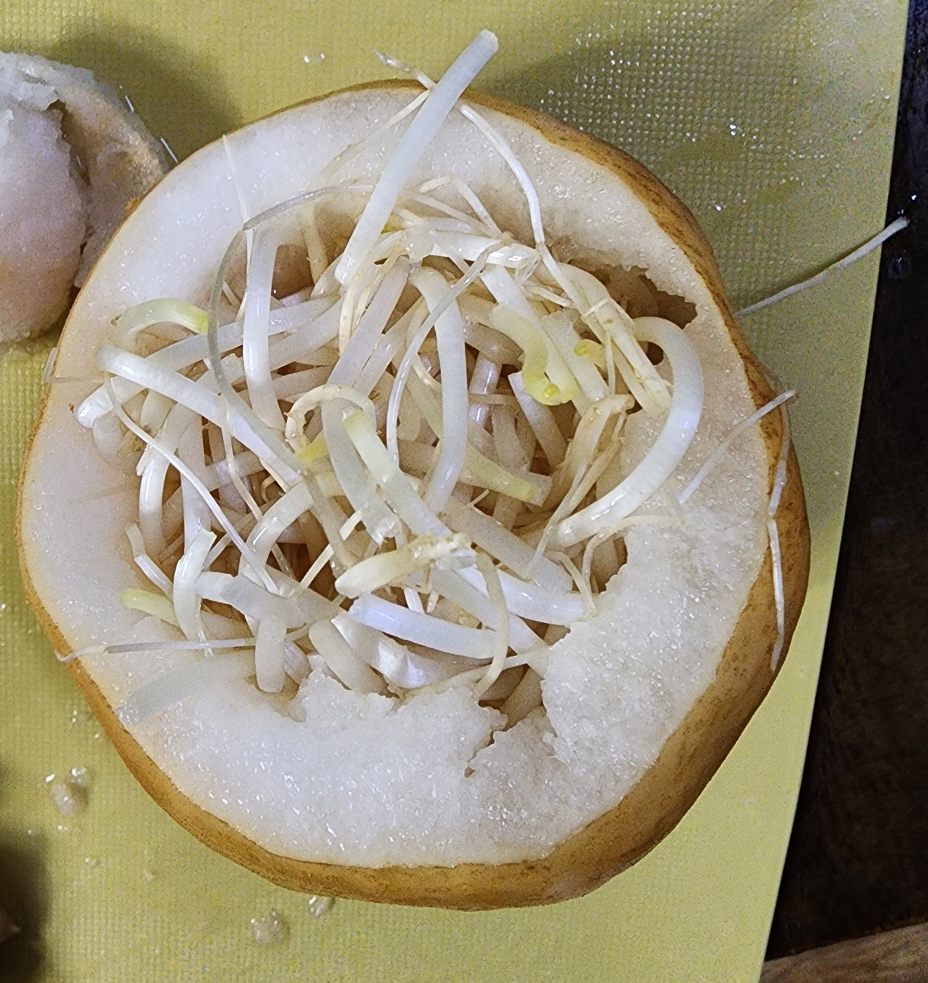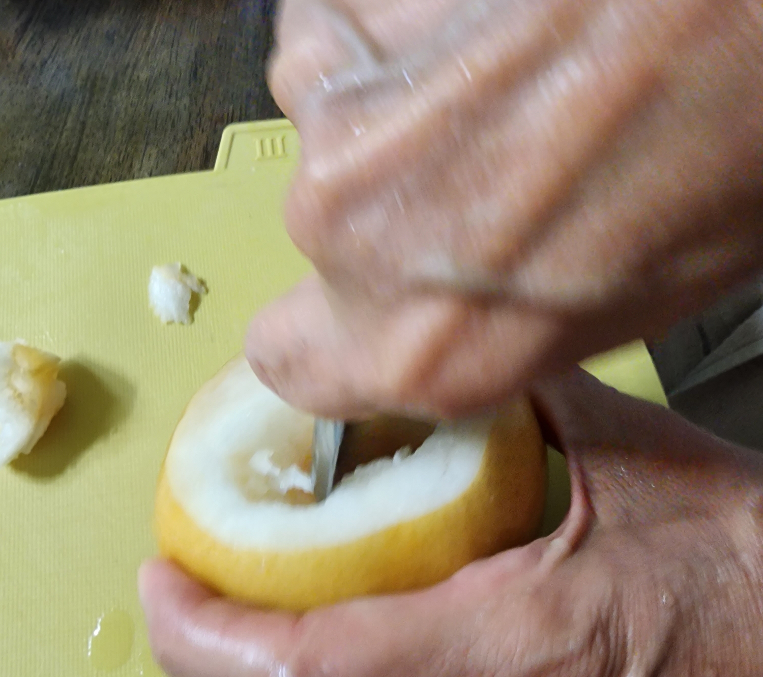 배과육이랑 씨앗 모두요~(과육은 조금 남겨주세요)